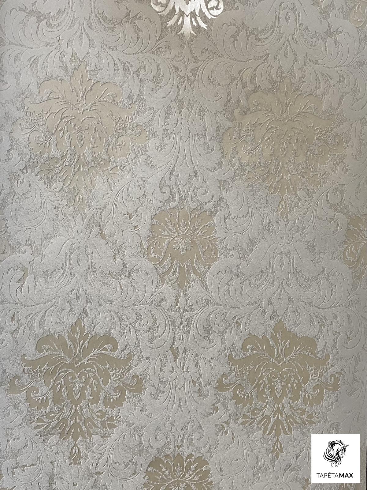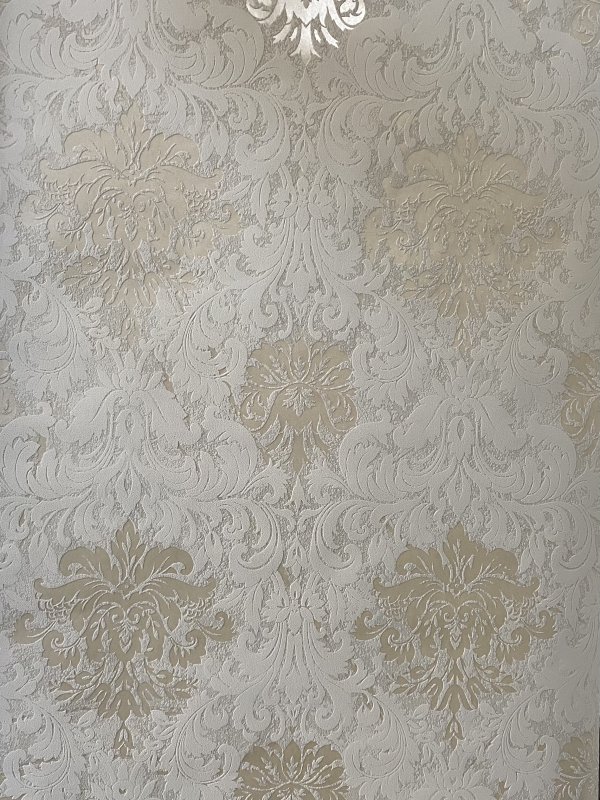 Bézs alapon fényes pezsgő színű klasszikus mintás vlies tapéta.
