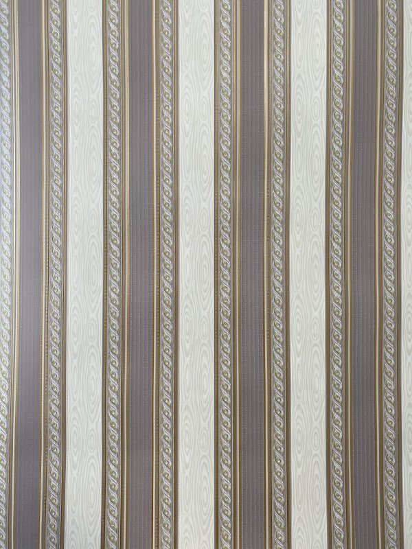 Barna és bézs csíkos, arany szállal futtatott kalsszikus papír tapéta.