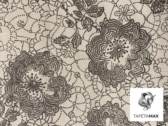 Halványszürke alapon sötét szürke virág mintás papír tapéta.